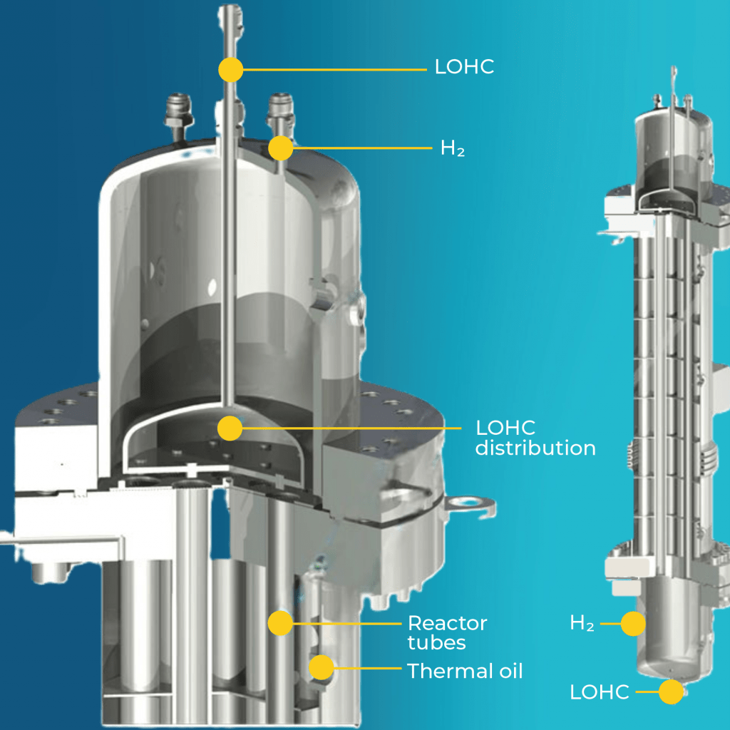 Based on a license from Hydrogenious LOHC Technologies; tested for 6 years at Fraunhofer Institute
